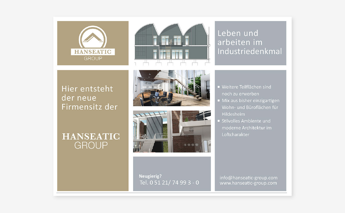 Die HANSEATIC-Group ist national im Bereich Immobilien und Investment aufgestellt. Wir haben in den letzten Jahren die Bereiche Print, Imagebroschüren, Mailings, Bauschilder, Messen und Internet bedient.Kundenbeschreibung: